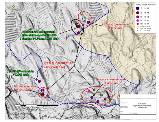 "Through multiple phases of exploration our team continues to discover new, highly prospective areas of LCT mineralization which has led to a tripling of our project size," commented Jeremy Poirier, CEO of Grit Metals. "This is a testament to the strength of our exploration team in their ability to discover the expressions and ultimately the source of these lithium rich deposits. Our exploration program remains fully-funded and continued until the end of October. The company will review all assays and determine next steps. Including the selection of multiple drill targets."